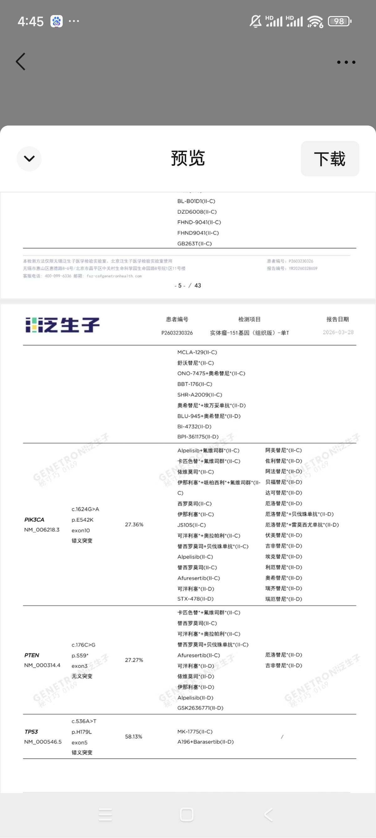 阳光~ 发表于 2026-04-08 11:49 问题不是奥西仿不仿的问题,就是正版奥西,自费伏美也都不贵,仿版奥西也不差,问题在于靶点太多,braf那个占比并不高,反而抑癌基因包括pik那个丰度都不低的,我感觉三代联合曲达(足量)都不记得能控制住,或者说,控制不住多久,后面还是考虑靶向轮换化疗之类的方案呢更好一些